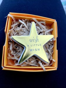 In a box measuring no more than 2 inches was a tiny ceramic gold star, etched with the words wish a little wish.